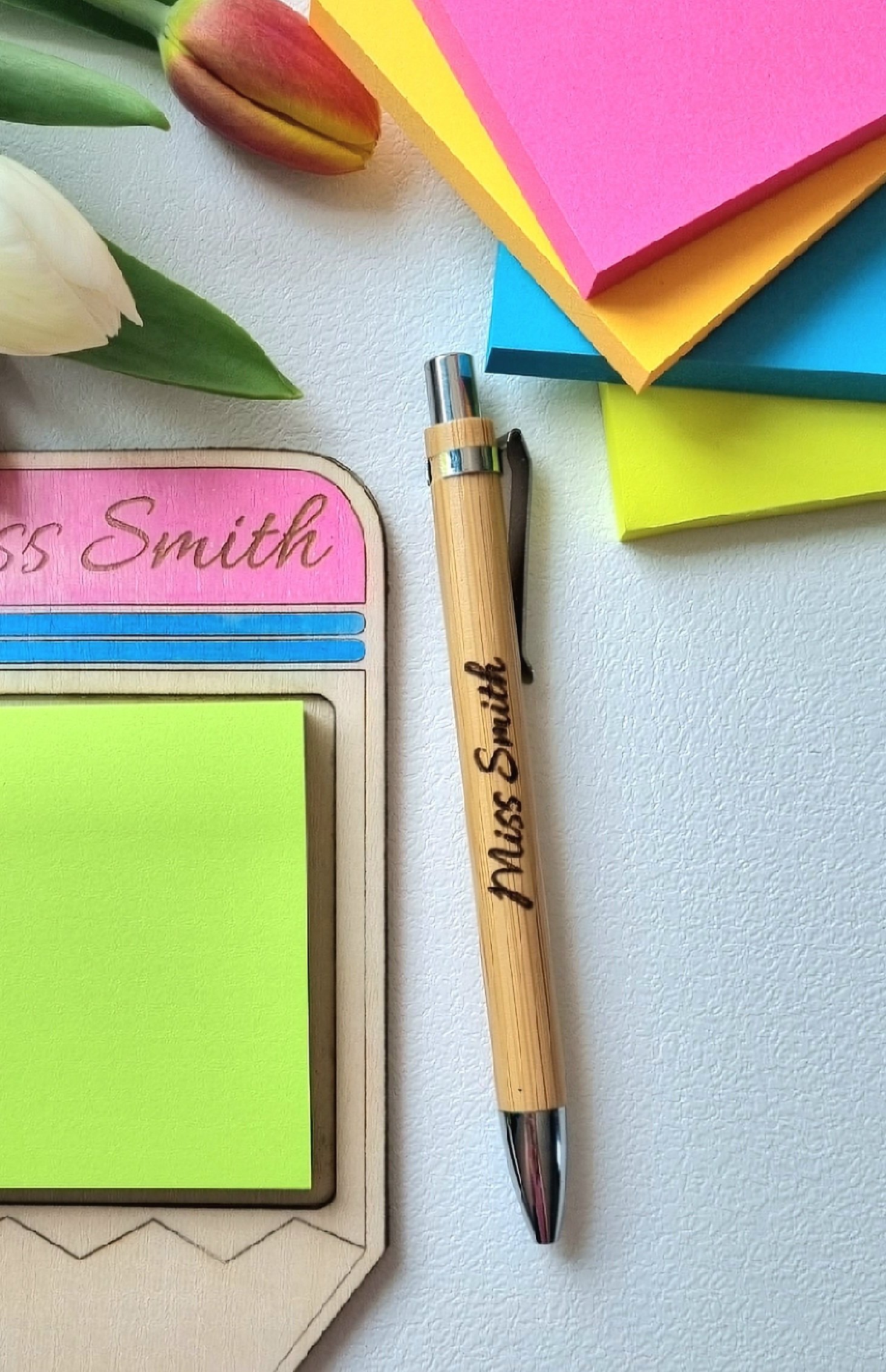 Drewniany długopis dla nauczyciela z personalizacją imienia to elegancki i praktyczny upominek, idealny na zakończenie roku szkolnego, Dzień Nauczyciela lub inną specjalną okazję.