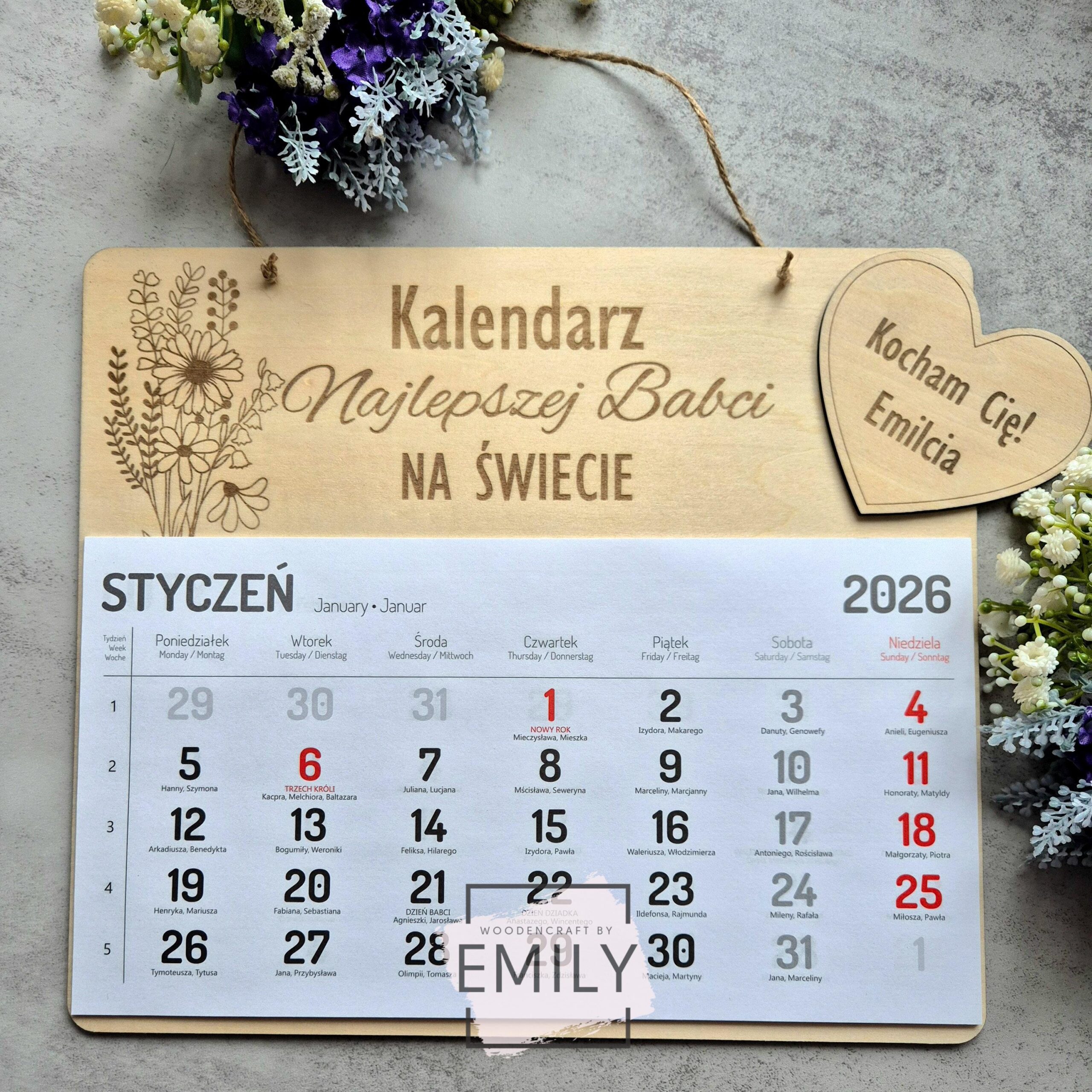 Drewniany kalendarz na Dzień Babci i Dziadka – personalizowany prezent z sercem ❤️