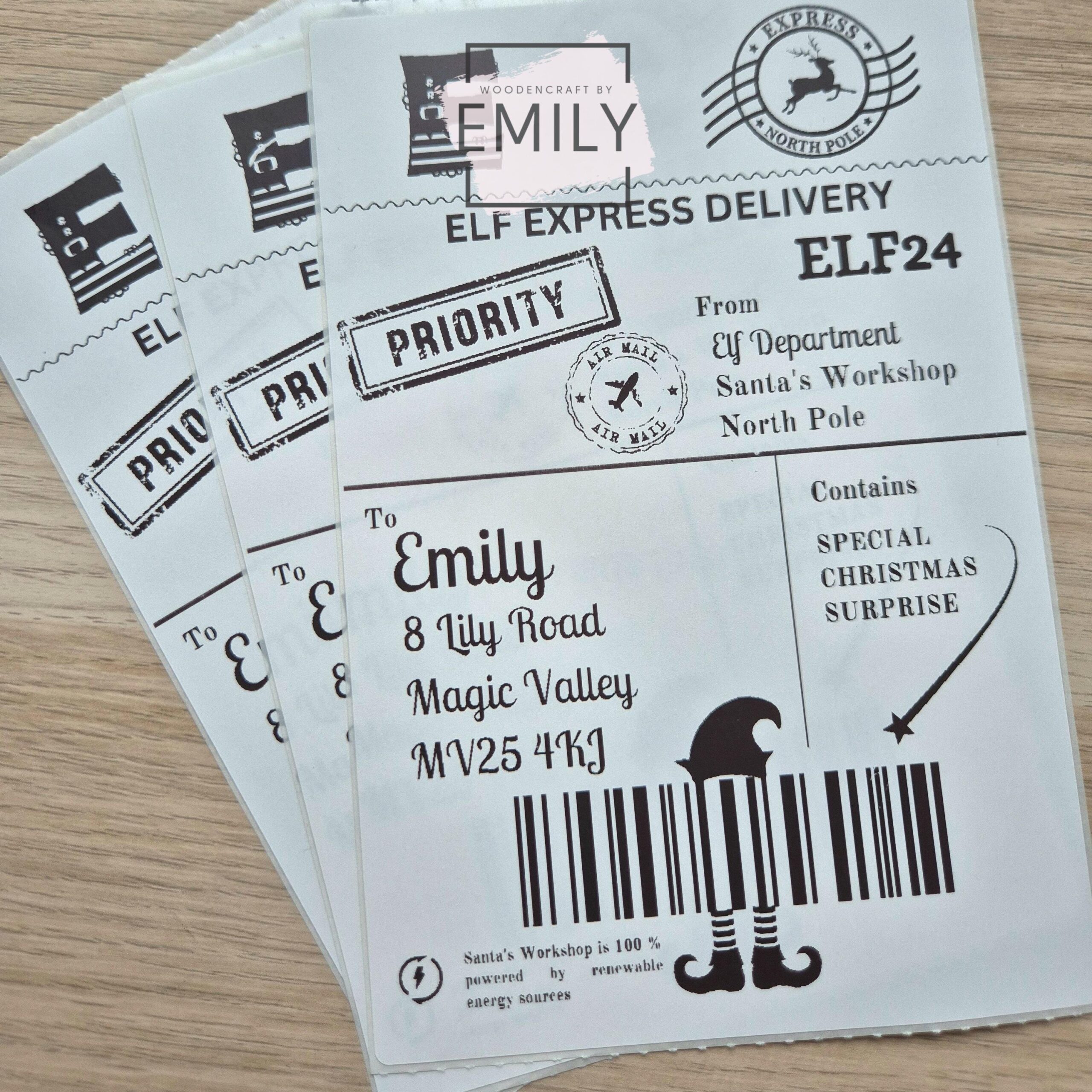 Dodaj odrobinę świątecznej magii do prezentów dzięki tym wyjątkowym naklejkom dostawy z Elf Express prosto z Warsztatu Świętego Mikołaja na Biegunie Północnym!
