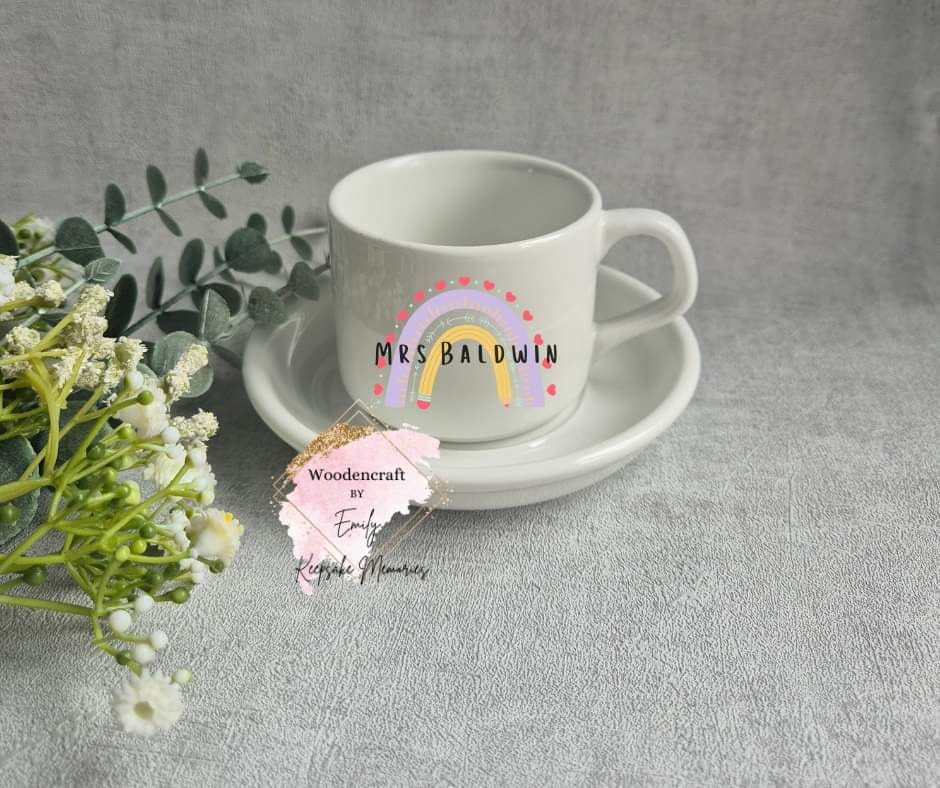 Podaruj swojemu nauczycielowi wyjątkowy prezent w postaci personalizowanej filiżanki ze spodkiem, ozdobionej uroczym motywem tęczy. To doskonały sposób, aby wyrazić wdzięczność i docenić trud nauczyciela.