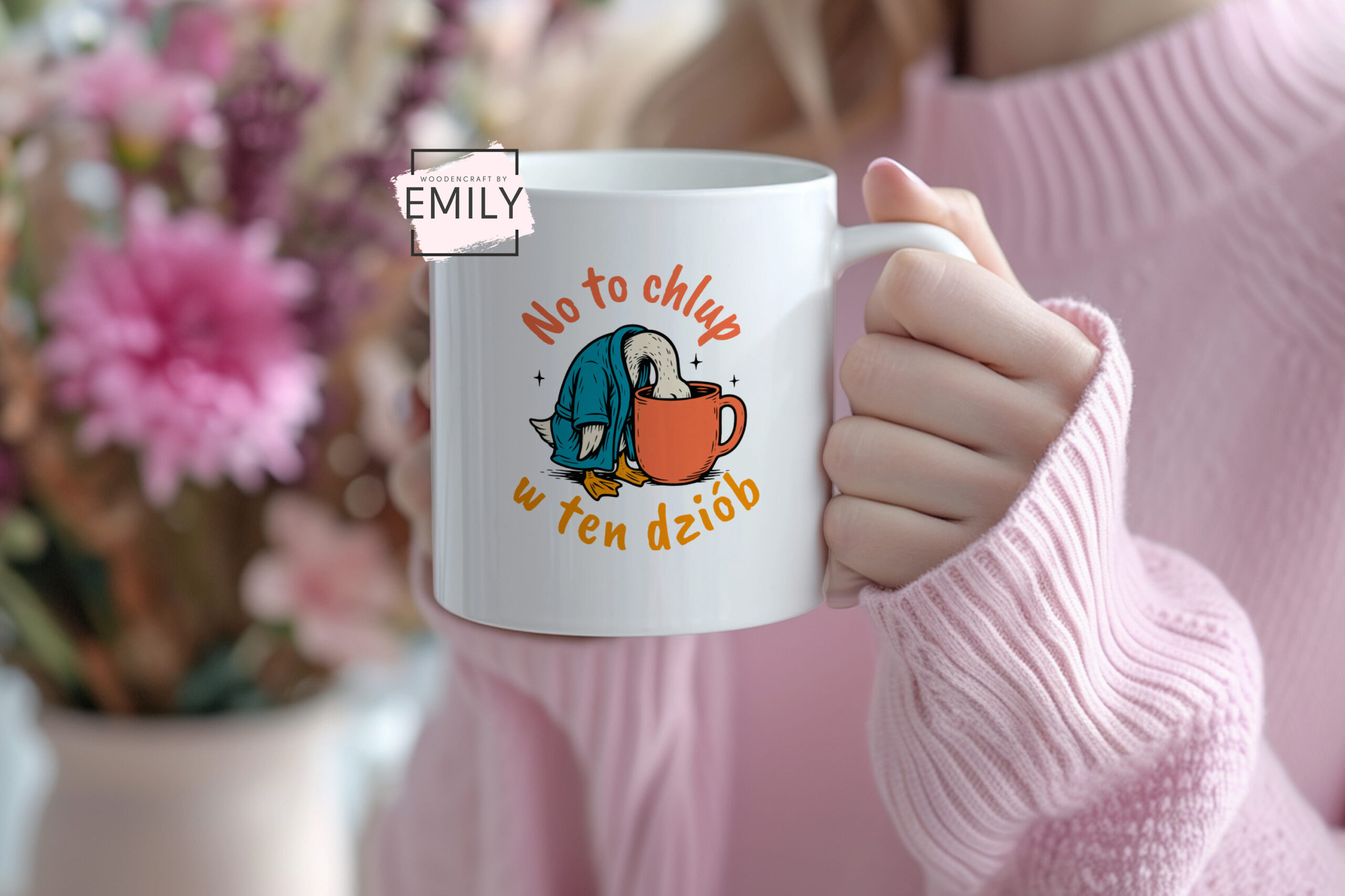 Masz czasem takie poranki, że jedyne co Cię ratuje to kawa albo herbata? Ten kubek pomoże Ci zacząć dzień z humorem – wystarczy spojrzeć na napis „No to chlup w ten dziób” i już wiadomo, co robić 😅