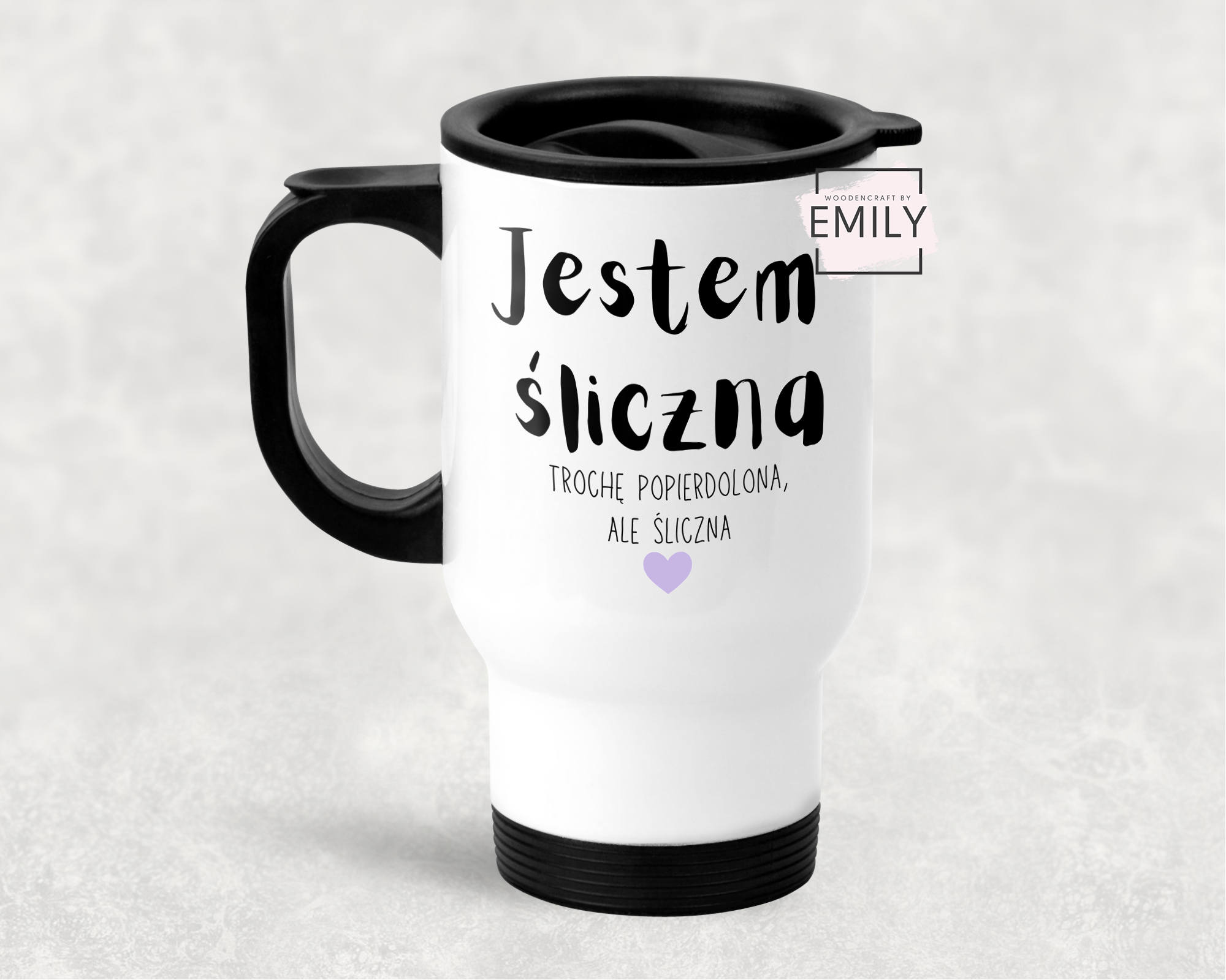 Kubek termiczny z napisem „Jestem śliczna, trochę popierdolona, ale śliczna”