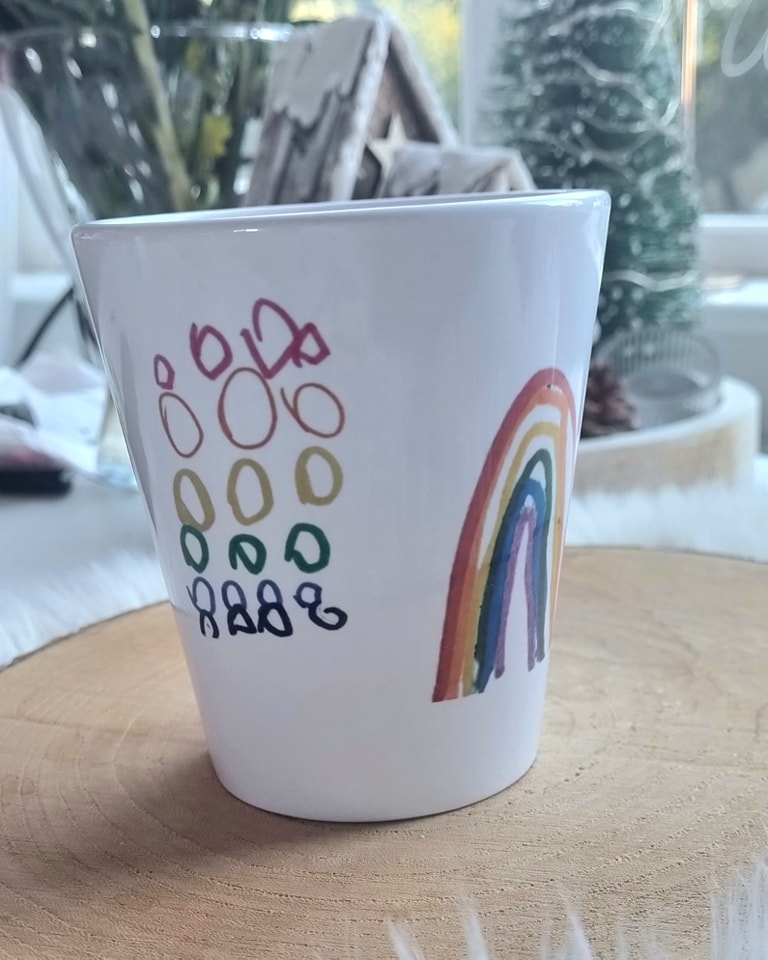 Wykonany z wysokiej jakości ceramiki, ten kubek jest idealnym sposobem na utrwalenie dziecięcej twórczości. Rysunek dziecka nadaje mu unikalny charakter i sprawia, że każdy łyk ulubionego napoju staje się jeszcze przyjemniejszy. Taki kubek to doskonały upominek na różne okazje – od Dnia Matki, przez Dzień Ojca, po urodziny i święta, przypominając o beztroskich chwilach i bliskich relacjach.